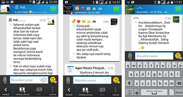 Lihat beberapa testimoni pasien berikut ini, benjolannya terus menerus mengempes / Mengecil setelah mengkonsumsinya dan segera di beri kesembuhan oleh Alloh SWT :